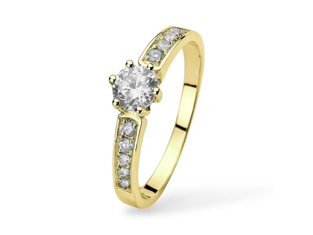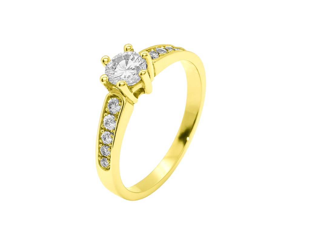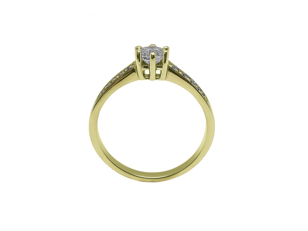 Krásný zásnubní prstýnek ze žlutého zlata AU 585/1000 zdobený brilianty.