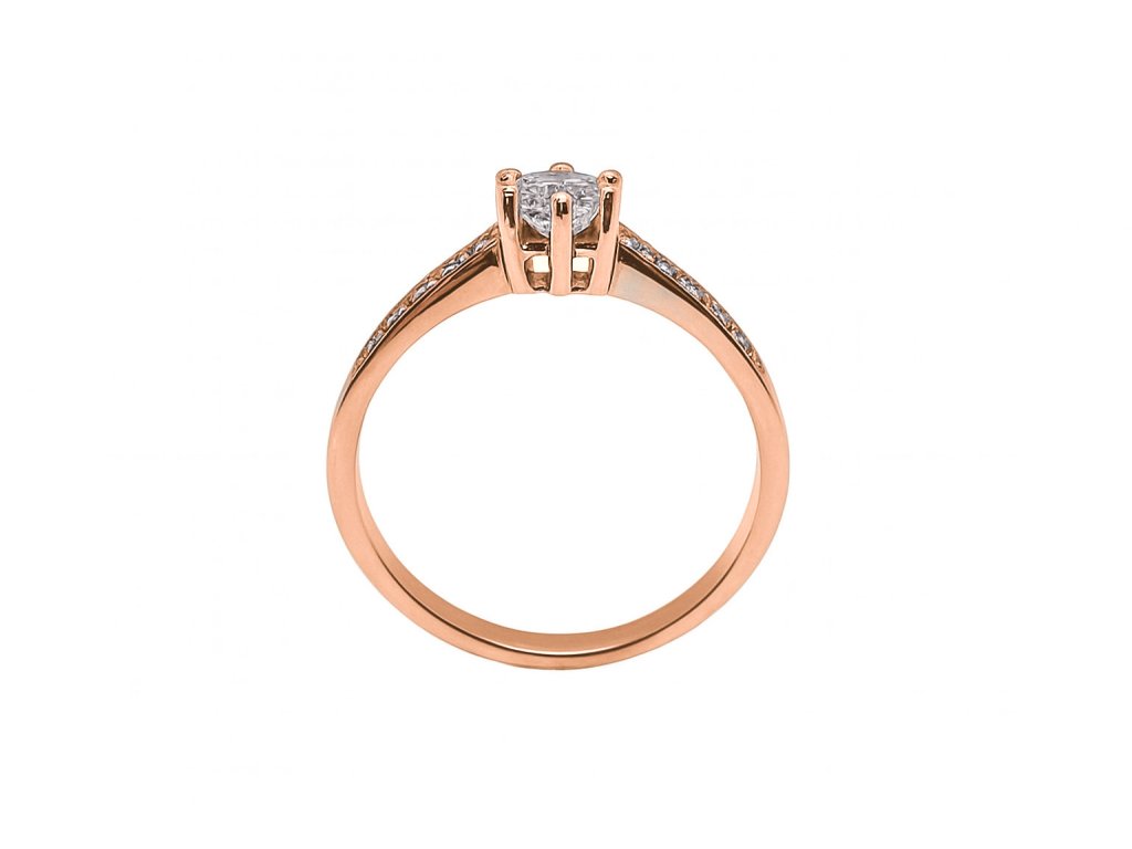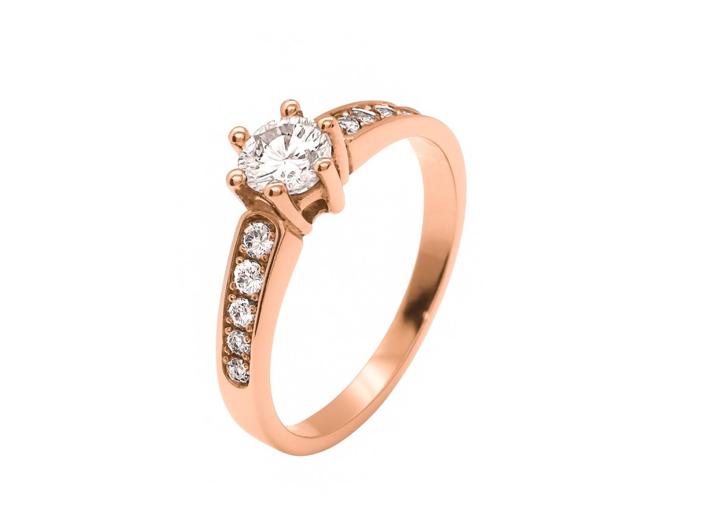 Krásný zásnubní prstýnek ze růžového zlata zdobený brilianty.