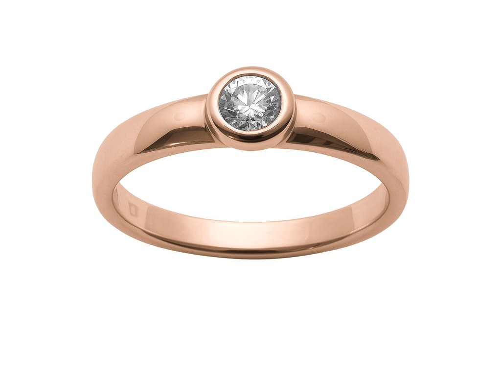 Zásnubní prsten z růžového zlata AU 585/1000 zdobený briliantem.