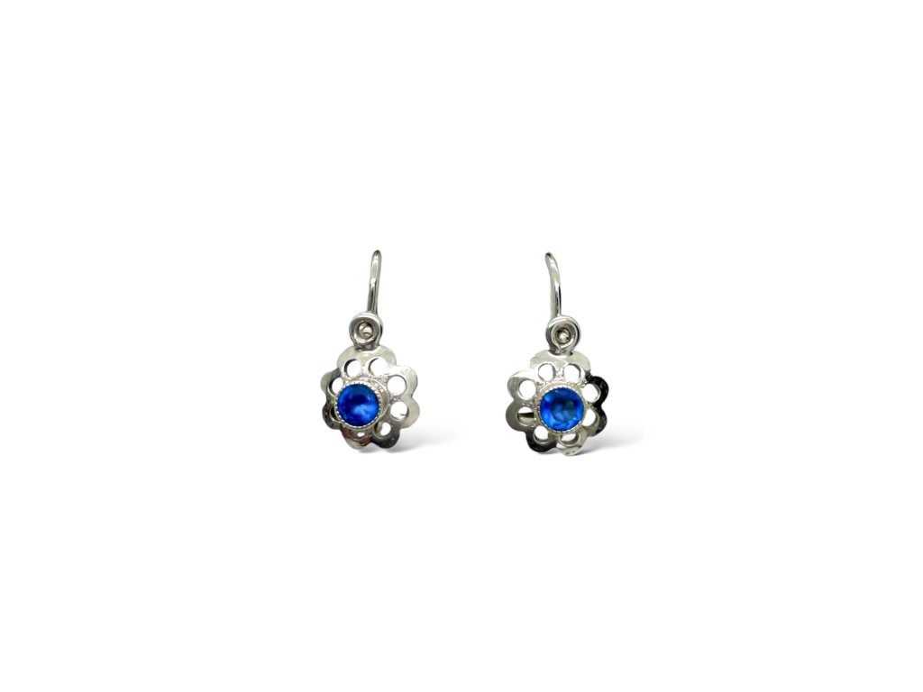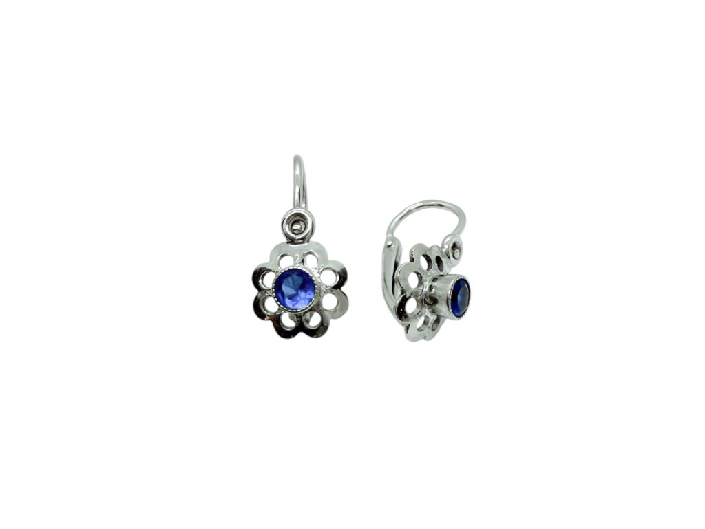 Dětské náušnice z bílého zlata AU 585/1000 . Náušničky jsou zdobeny modrým zirkonem.
