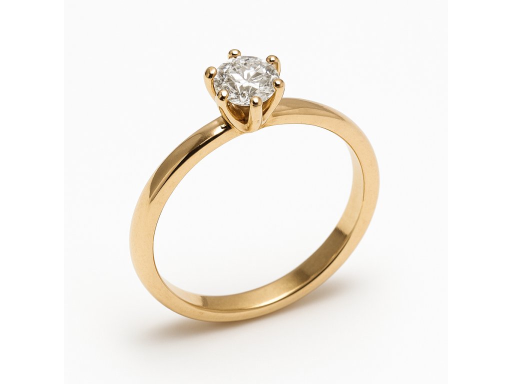 Krásný zásnubní prstýnek ze žlutého zlata AU 585/1000. Prsten je zdoben zirkonem.