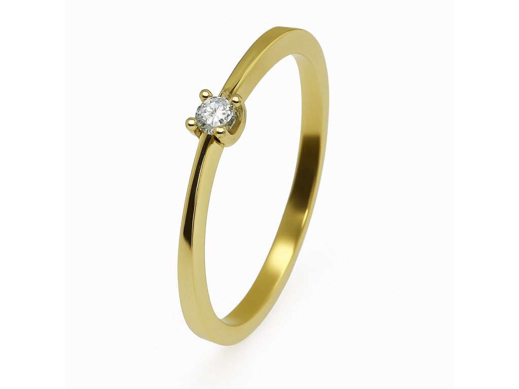Jemný zásnubní prstýnek ze žlutého zlata AU 585/1000 zdobený briliantem. Prsten je velice oblíbený pro svoji jednoduchost.