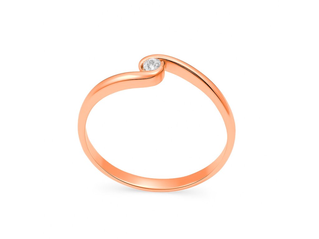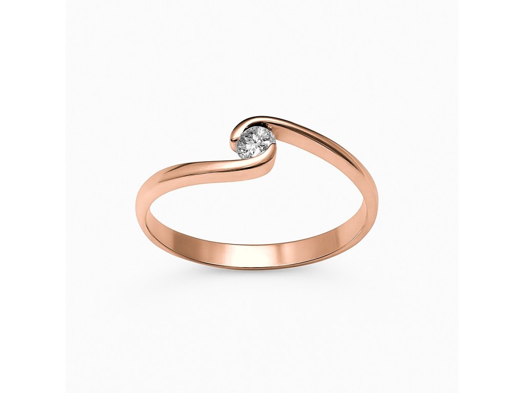 Krásný zásnubní prstýnek z růžového zlata AU 585/1000 zdobený briliantem. Prsten je oblíbený pro svoji jednoduchost.
