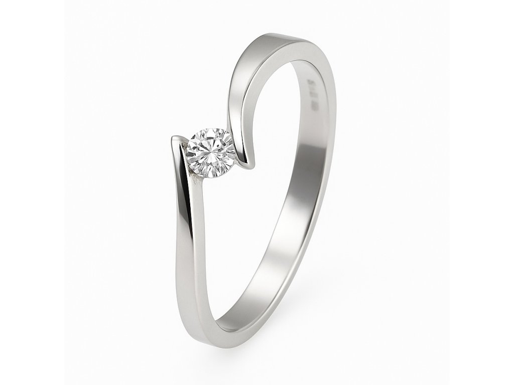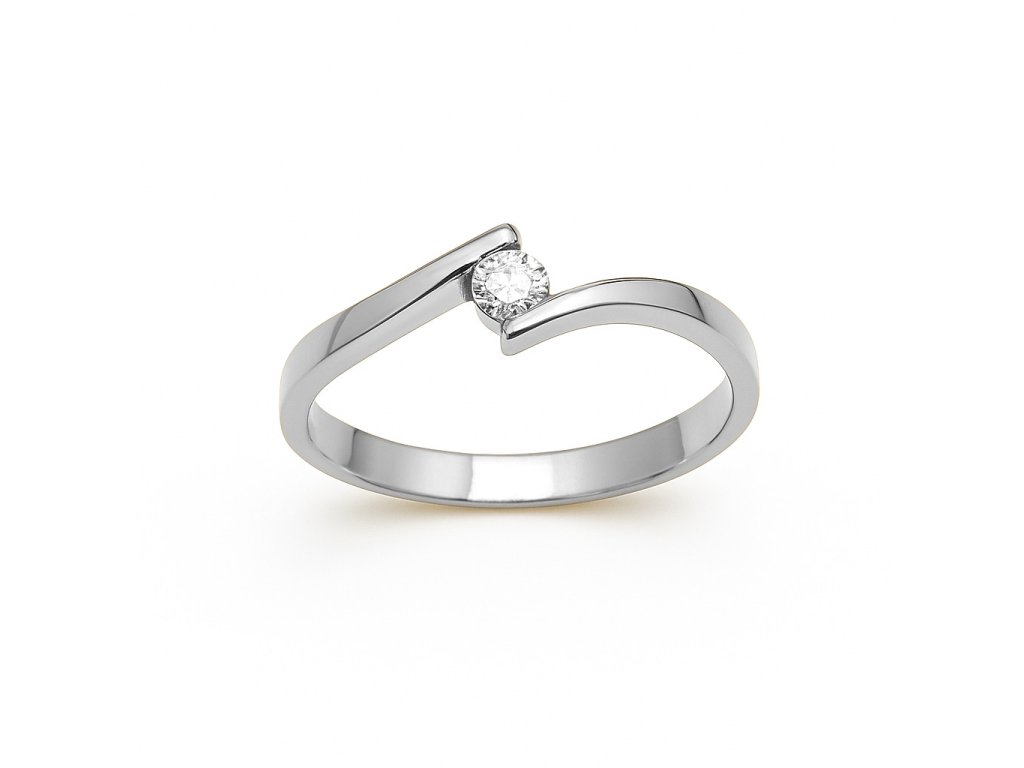 Jemný zásnubní prstýnek z bílého zlata AU 585/1000 zdobený briliantem. Prsten je velice oblíbený pro svoji jednoduchost.