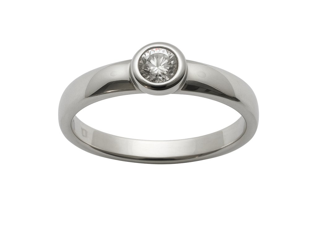 Zásnubní prsten z bílého zlata AU 585/1000 zdobený briliantem.