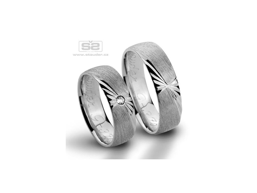 Snubní prsteny Au 585/1000. Dámský prsten je osazen 1 kamínkem.