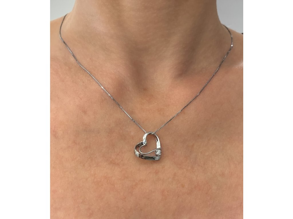 Dámský briliantový přívěs z bílého zlata AU 585/1000. Přívěs ve tvaru srdíčka zdobí briliant. Řetízek není součástí přívěsku.