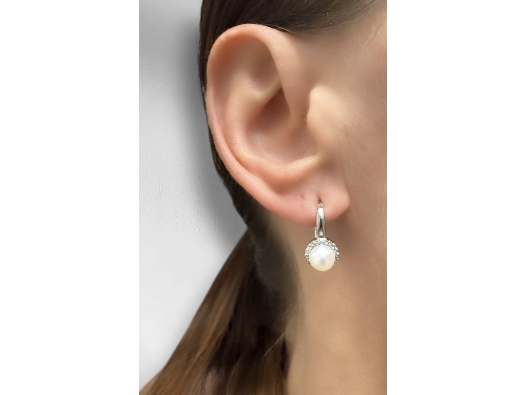 Dámské náušnice ze stříbra AG 925/1000. Náušnice zdobené perlou a zirkony.