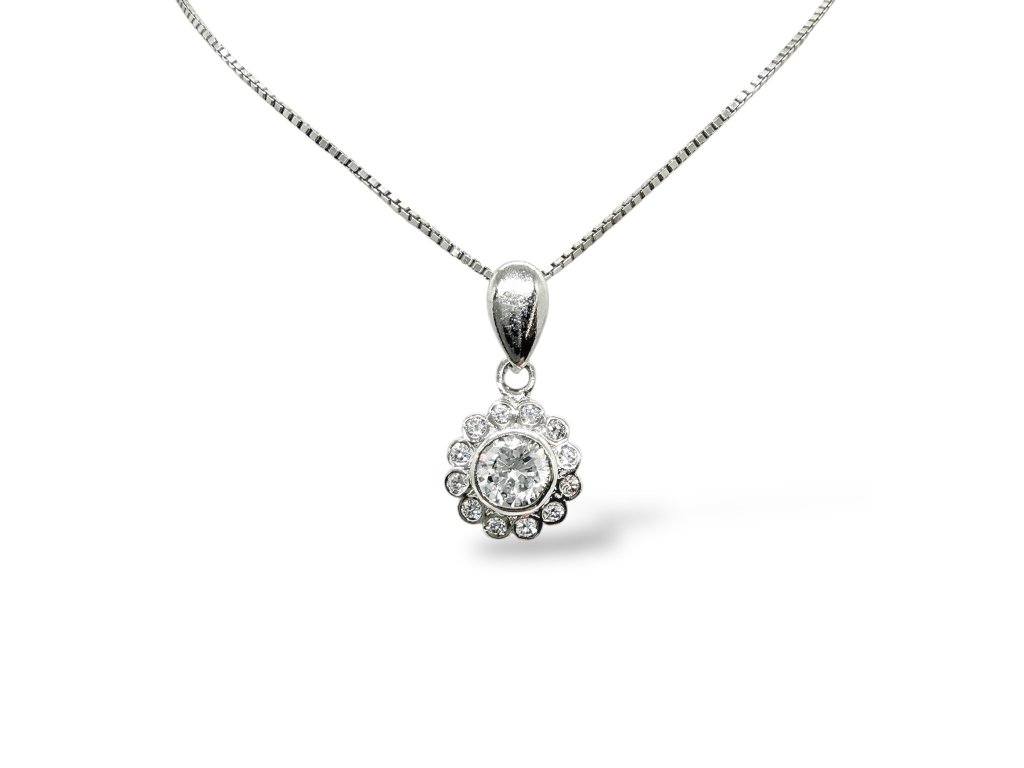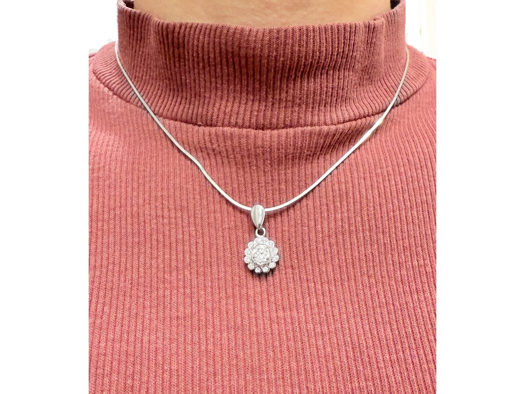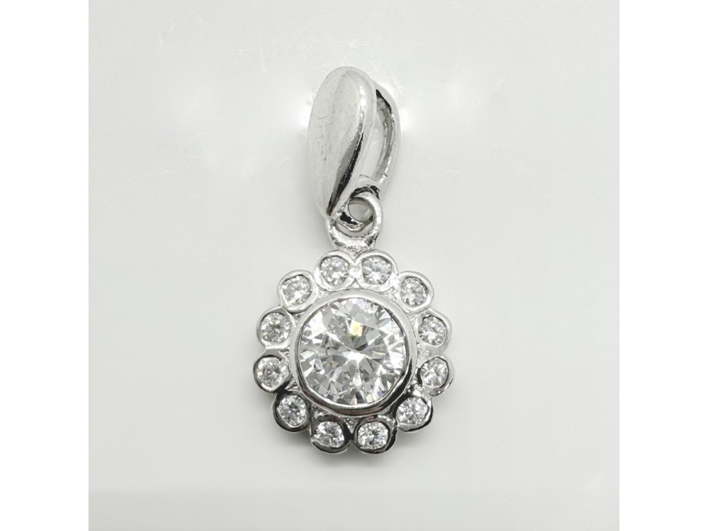 Stříbrný přívěšek AG 925/1000 ve tvaru kytičky. Přívěšek je zdobený zirkony. Řetízek není součástí přívěsu.