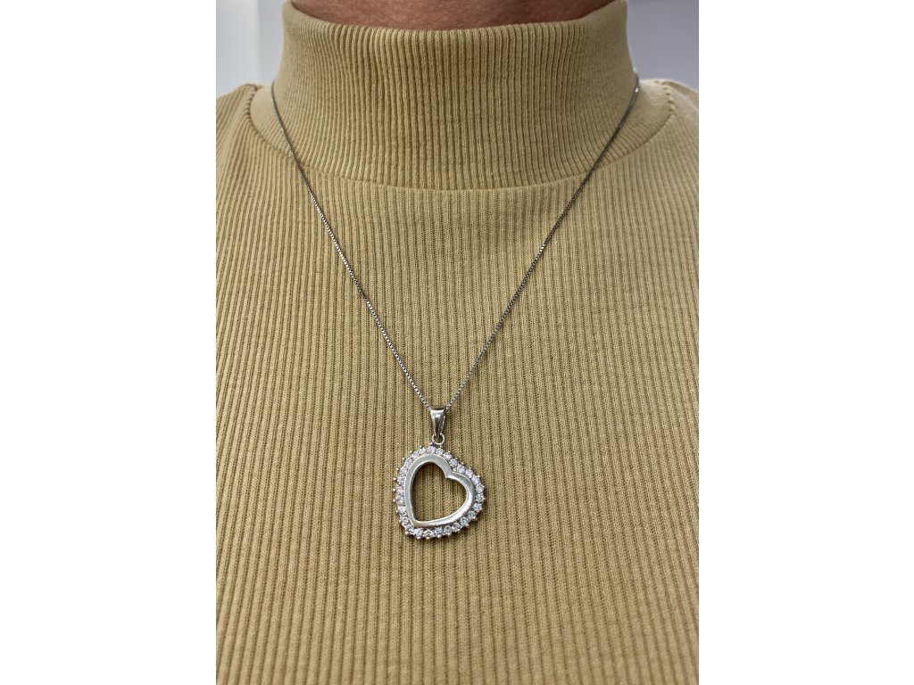 Dámský stříbrný přívěšek AG 925/1000. Přívěšek ve tvaru srdce zdobený zirkony. Řetízek není součástí přívěsu.