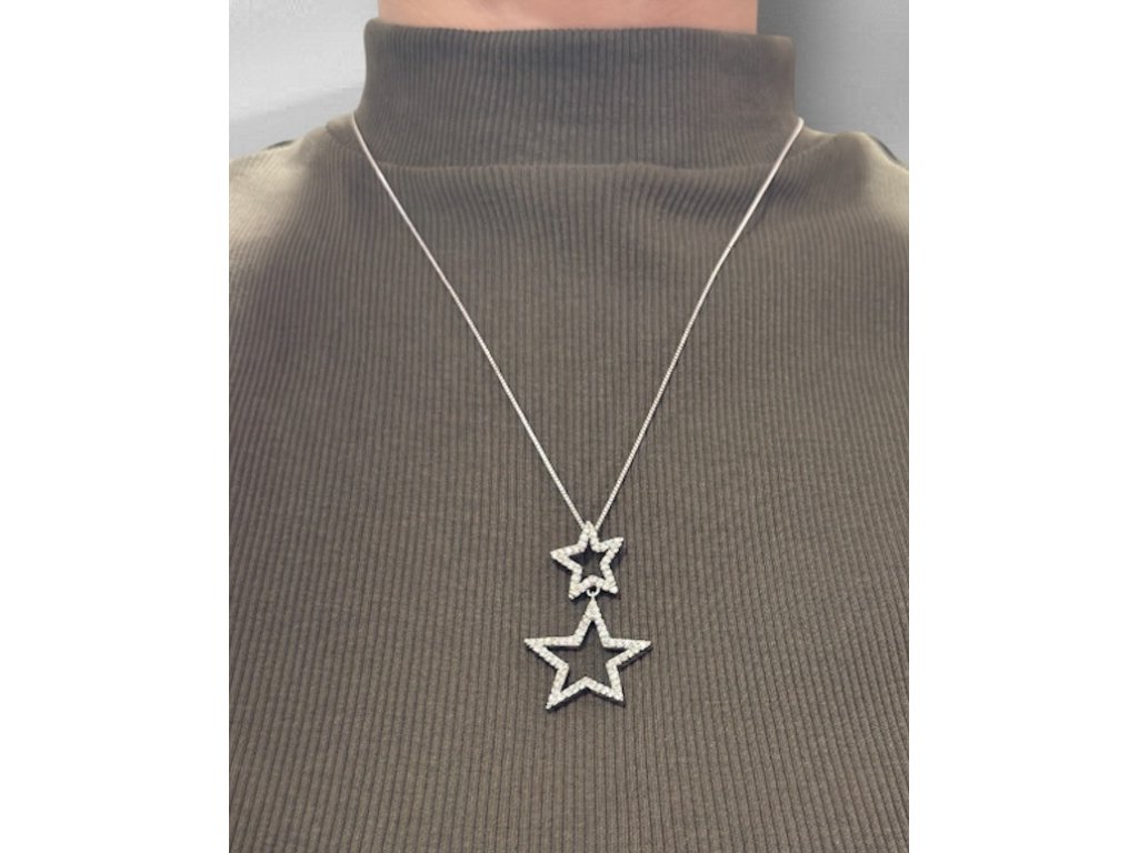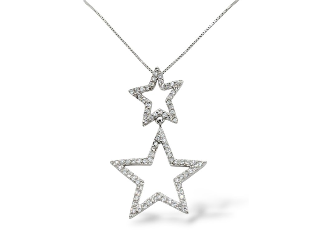 Dámský stříbrný přívěšek AG 925/1000. Přívěšek ve tvaru dvou hvězd, zdobený zirkony. Řetízek není součástí přívěsu.