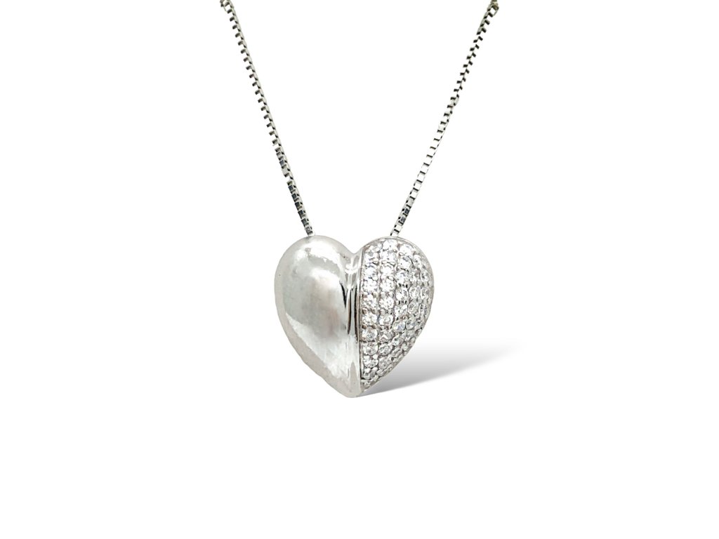 Dámský stříbrný přívěšek AG 925/1000. Přívěšek ve tvaru srdce zdobený zirkony. Řetízek není součástí přívěsu.