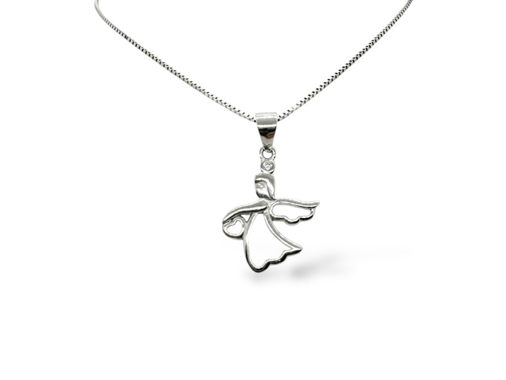 Stříbrný přívěšek AG 925/1000. Andělíček je zdobený drobným zirkonem. Řetízek není součástí přívěsu.