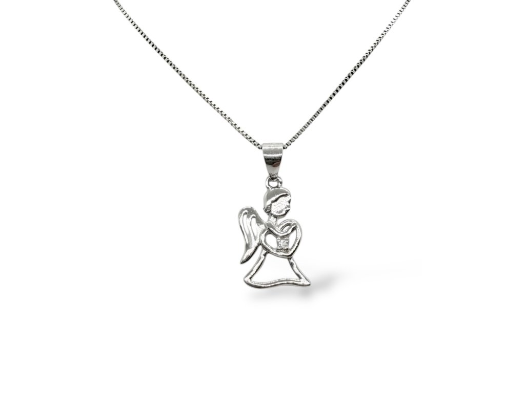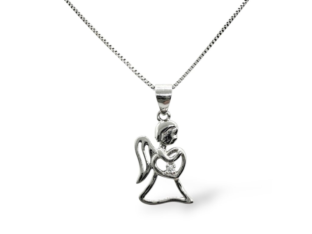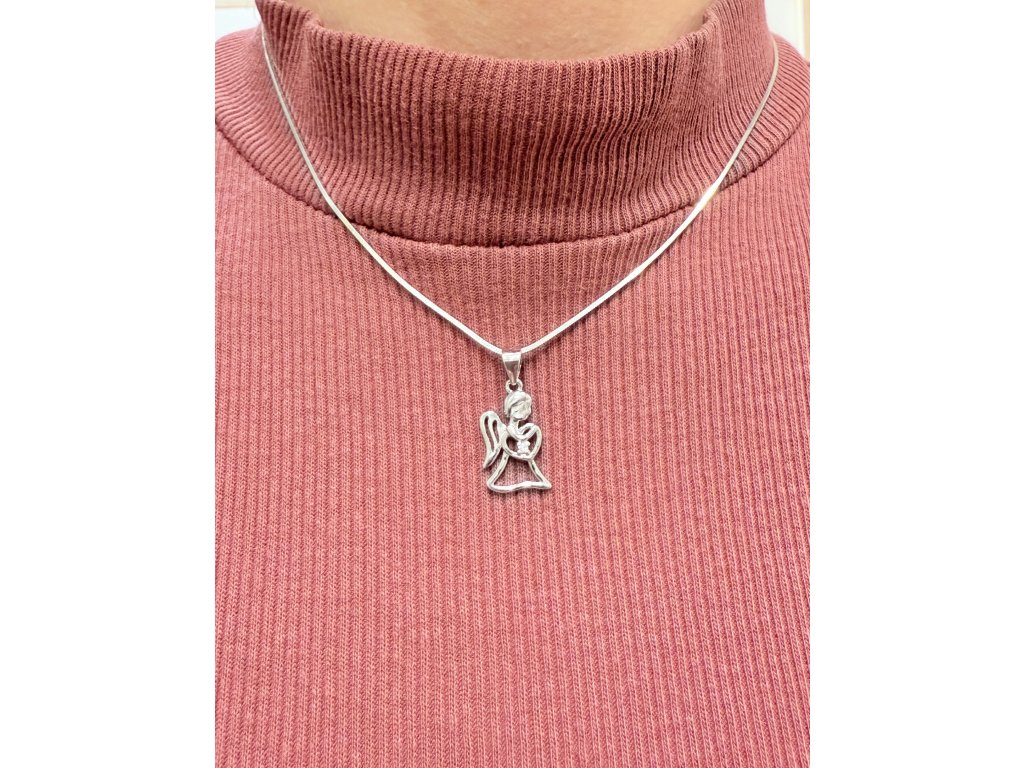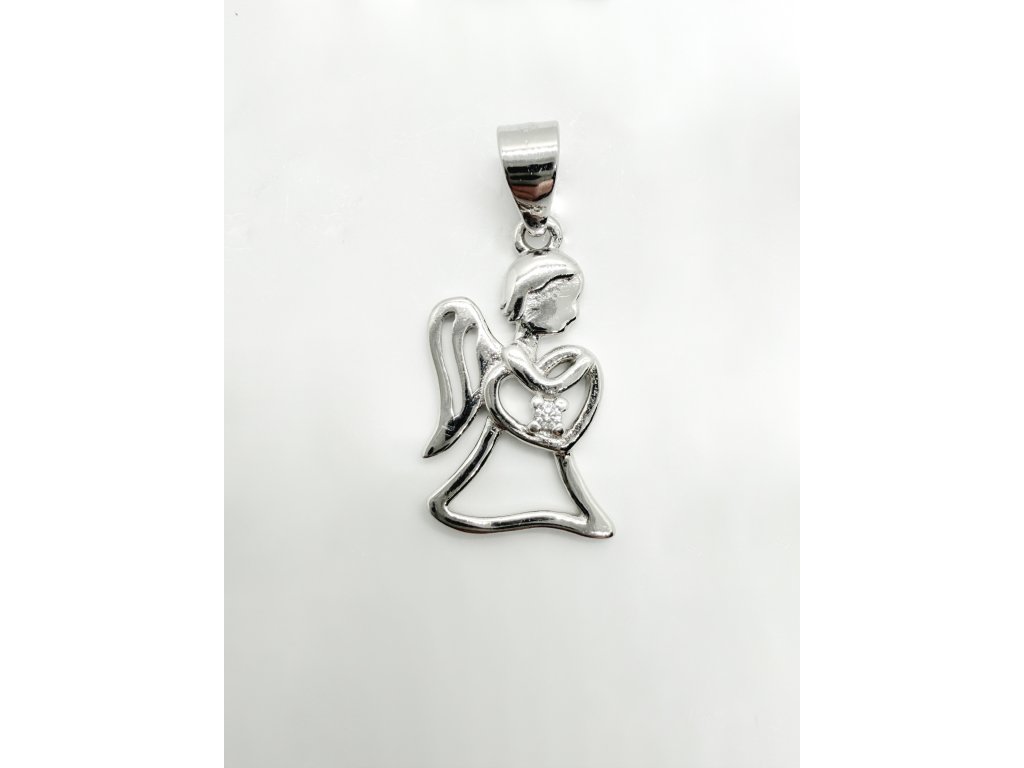 Stříbrný přívěšek AG 925/1000. Andělíček je zdobený drobným zirkonem. Řetízek není součástí přívěsu.