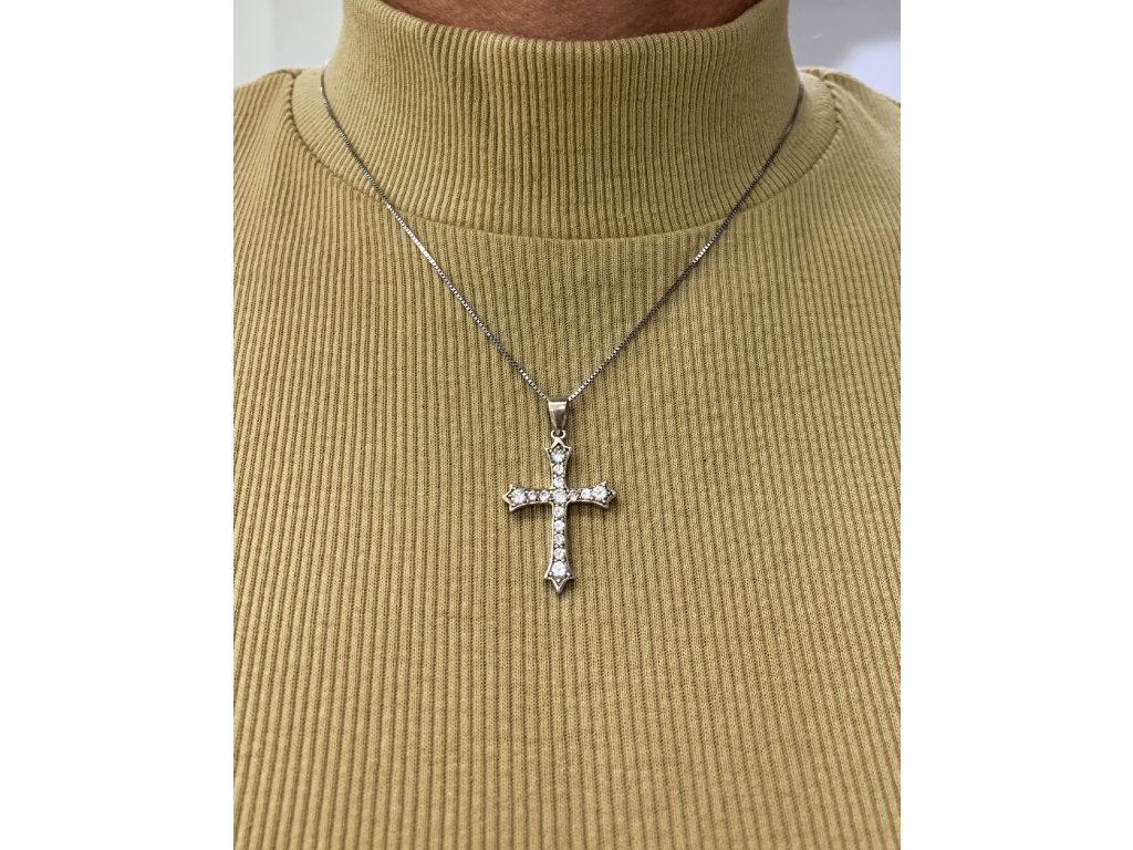 Dámský stříbrný přívěšek AG 925/1000. Přívěšek ve tvaru křížku zdobený zirkony. Řetízek není součástí přívěsu.