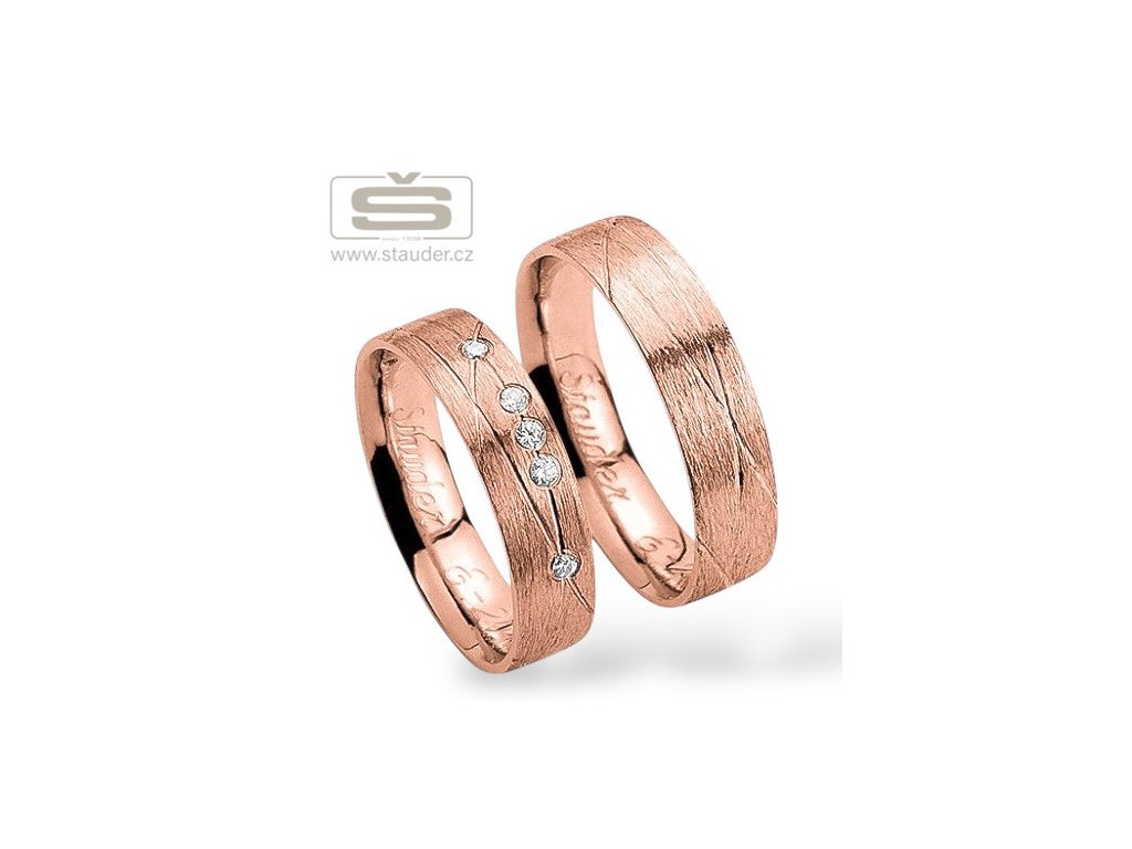 Snubní prsteny E204 jsou široké 5 mm, silné 1,4 mm, zdobené různě se křížícími lesklými linkami v matném povrchu. Dámský prsten je osazen 9-ti zirkony, nebo brilianty. Zaoblená vnitřní strana pro pohodlnější nošení. Váha ve velikostech 52 + 62 je asi 9,0 g. Prsteny je možné vyrobit užší či širší, nebo z jiné barvy zlata, přesně podle Vašeho přání. Dodací lhůta snubních prstenů je 3 týdny. Záruka 10 let.