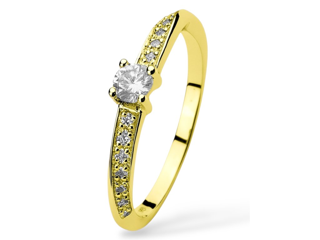 Krásný zásnubní prstýnek ze žlutého zlata AU 585/1000 zdobený brilianty.