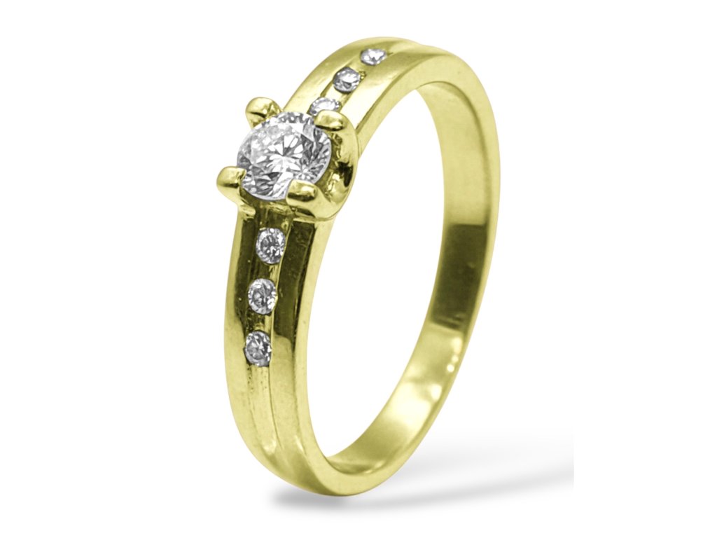 Zásnubní prstýnek ze žlutého zlata AU 585/1000 zdobený brilianty.