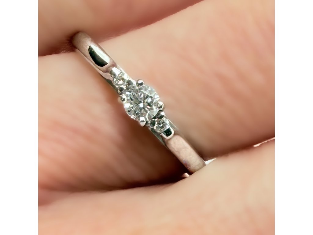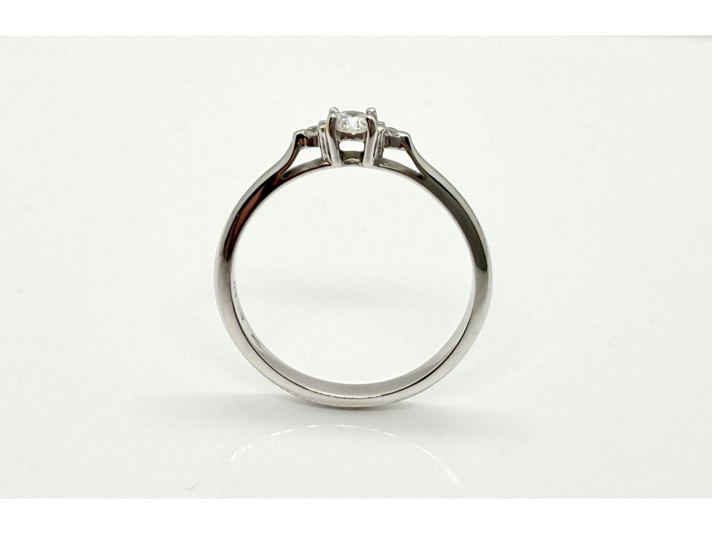 Jemný zásnubní prstýnek z bílého zlata AU 585/1000 zdobený brilianty. Prsten je velice oblíbený pro svoji jednoduchost.