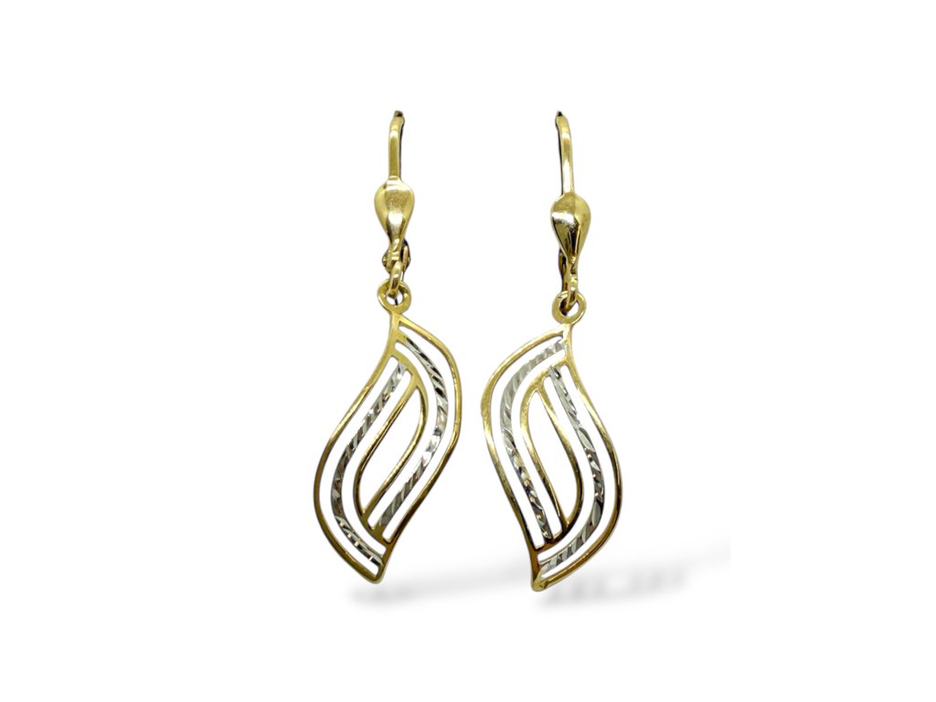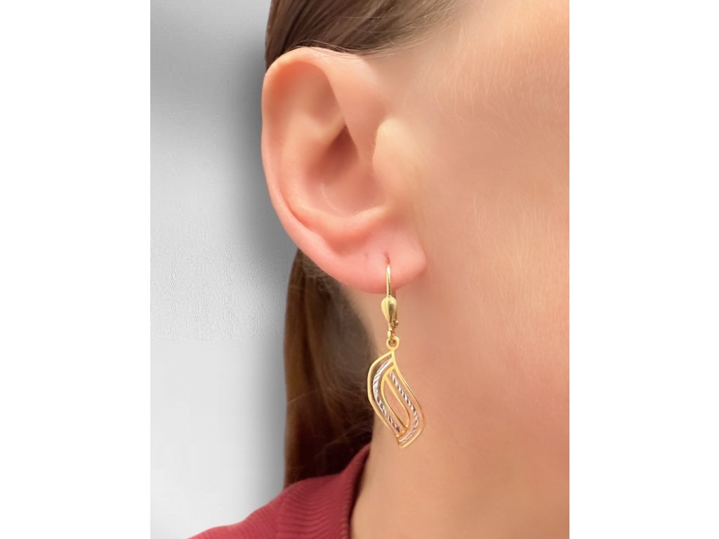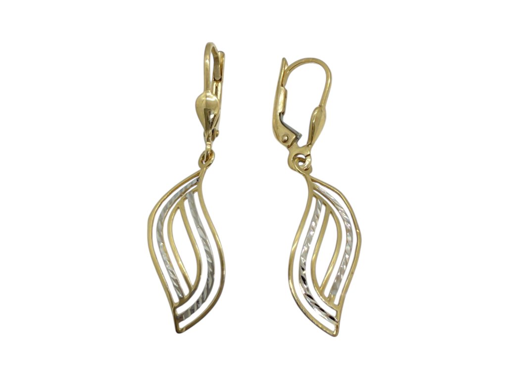 Dámské visací náušnice ze žlutého zlata AU 585/1000. Náušnice zdobí kombinace bílého a žlutého zlata.