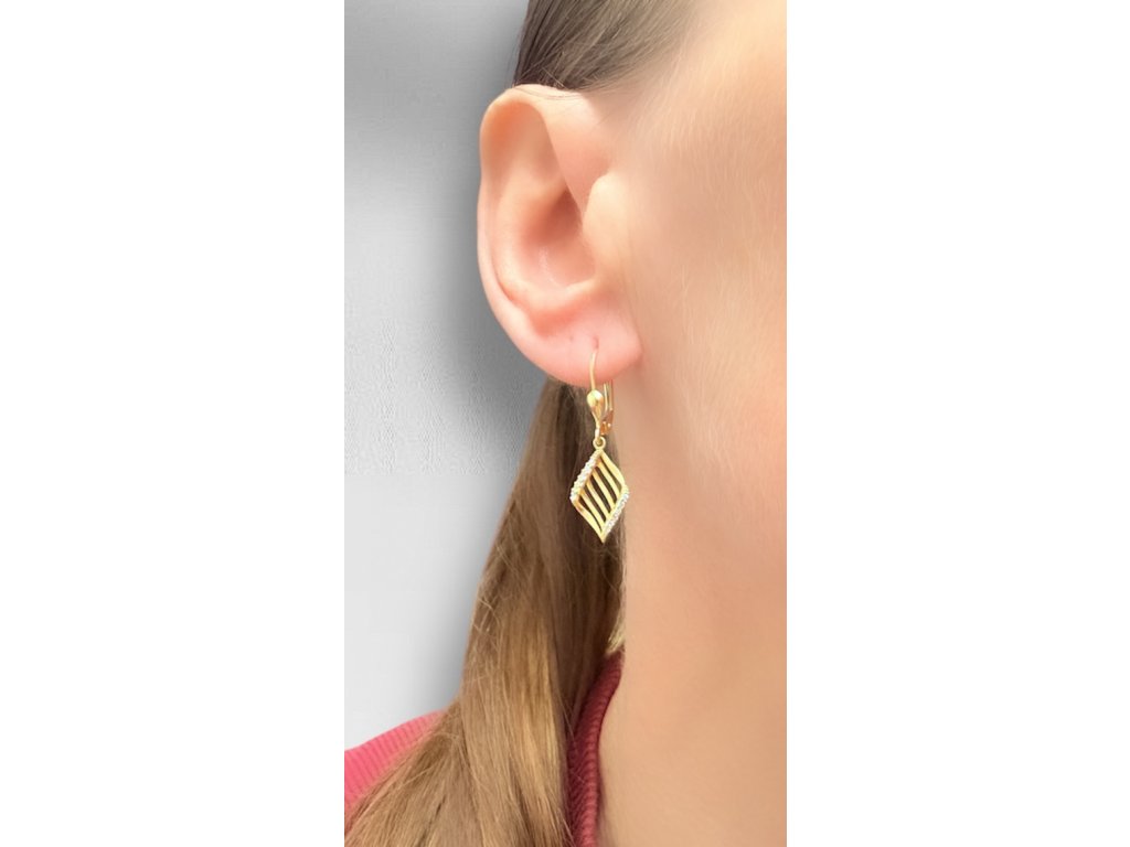 Dámské náušnice ze žlutého zlata AU 585/1000. Náušnice jsou zdobené drobnými zirkony.