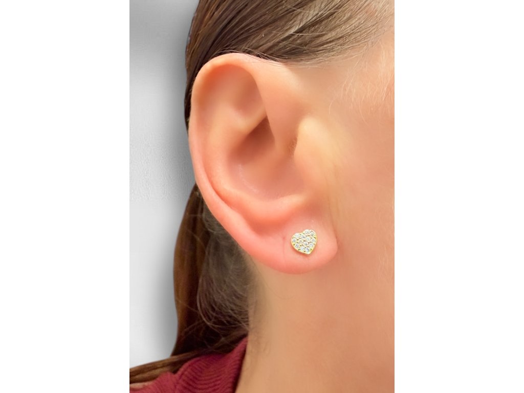 Dámské náušnice ze žlutého zlata AU 585/1000. Náušnice ve tvaru srdíčka, zdobené zirkony.
