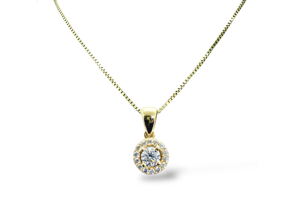 Jemný přívěšek ze žlutého zlata AU 585/1000. Přívěs zdobený zirkony. Řetízek není součástí přívěsu.