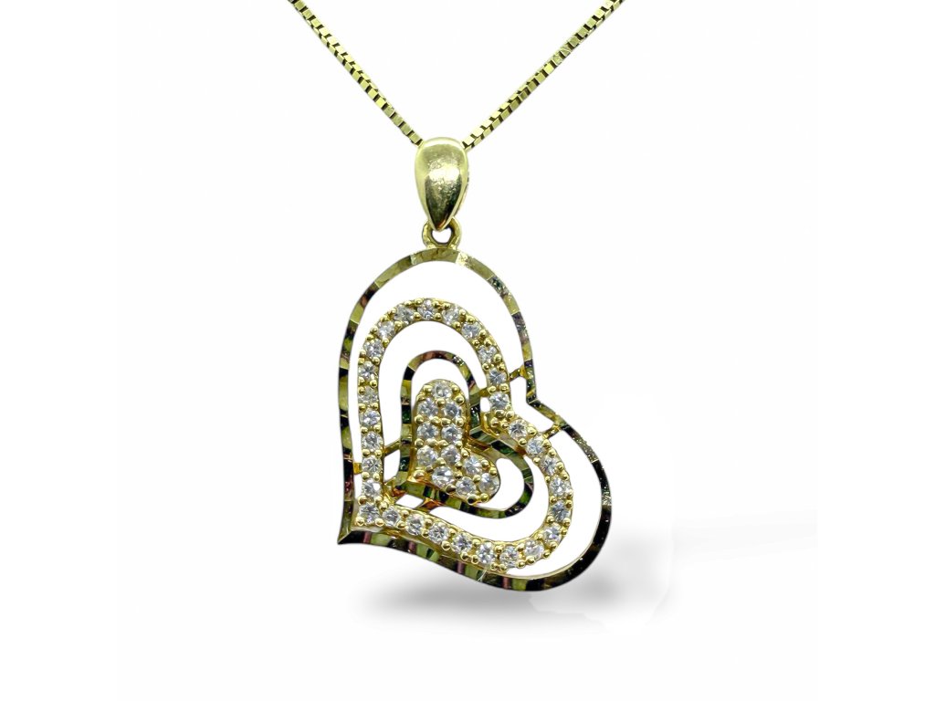 Dámský přívěšek ze žlutého zlata AU 585/1000. Přívěs ve tvaru srdíčka, zdobený drobnými zirkony. Řetízek není součástí přívěsu.