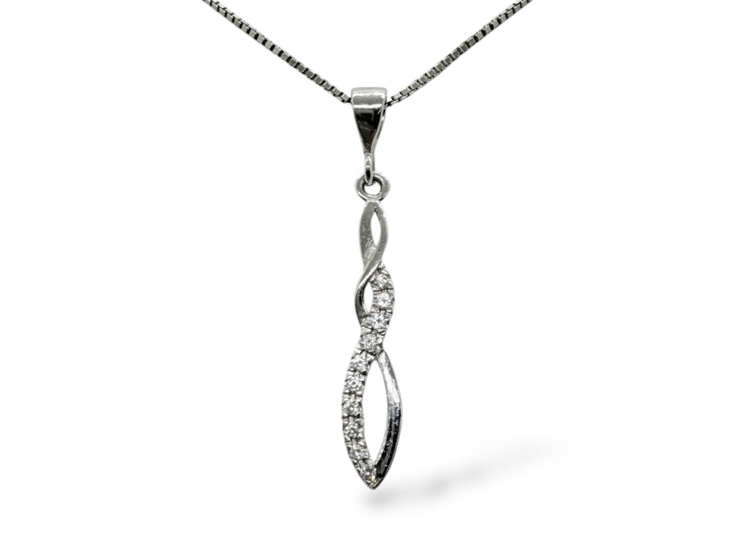 Dámský přívěšek z bílého zlata AU 585/1000. Přívěs zdobí drobné zirkony. Řetízek není součástí přívěsu.
