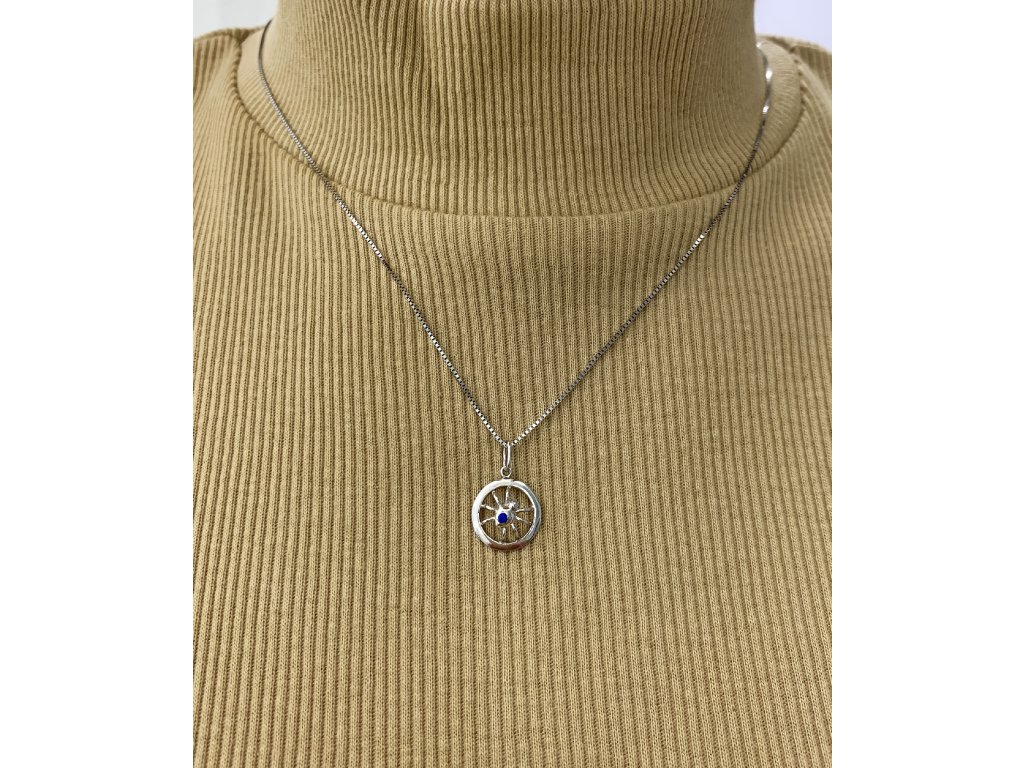 Přívěšek z bílého zlata AU 585/1000. Pavouček je zdobený drobným modrým zirkonem. Řetízek není součástí přívěsu.