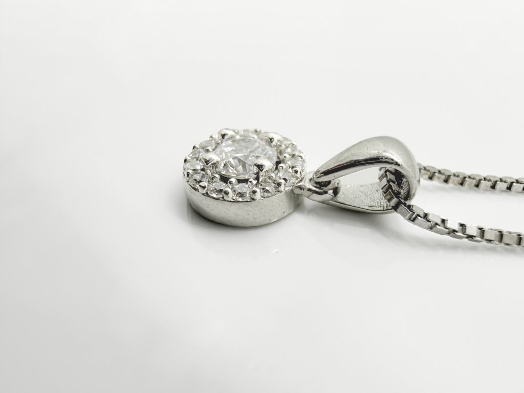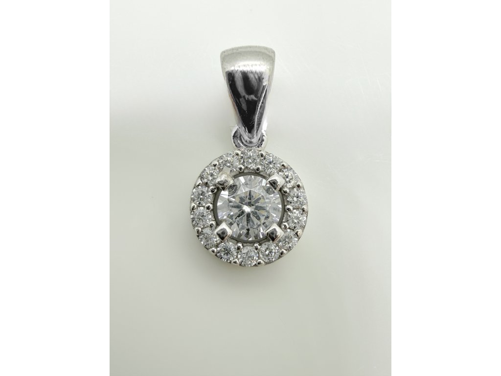Jemný přívěšek z bílého zlata AU 585/1000. Přívěs zdobený zirkony. Řetízek není součástí přívěsu.