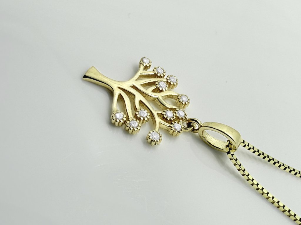Dámský přívěšek ve tvaru stromu života ze žlutého zlata AU 585/1000. Přívěs zdobí zirkony. Řetízek není součástí přívěsu.