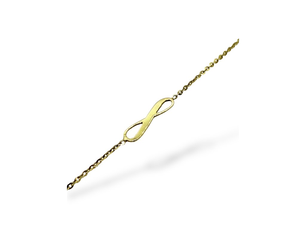 Jemný dámský řetízek ze žlutého zlata s přívěskem ve tvaru nekonečna.