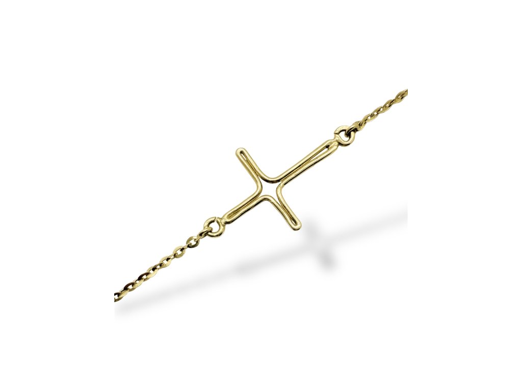 Jemný dámský řetízek ze žlutého zlata s přívěskem ve tvaru křížku.