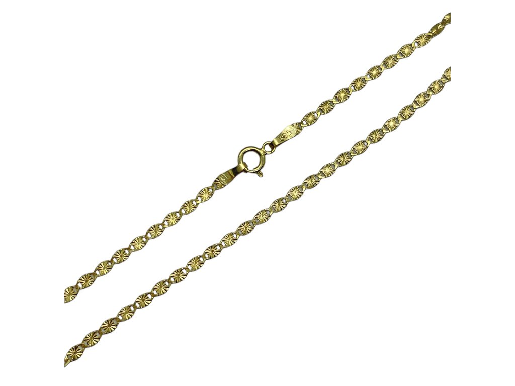 Dámský řetízek ze žlutého zlata AU 585/1000. Řetízek je zdobený rytinou.