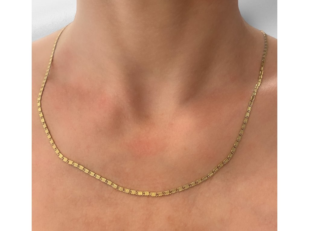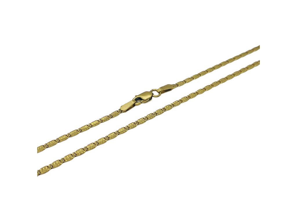 Řetízek ze žlutého zlata AU 585/1000. Řetízek je zdobený rytinou.