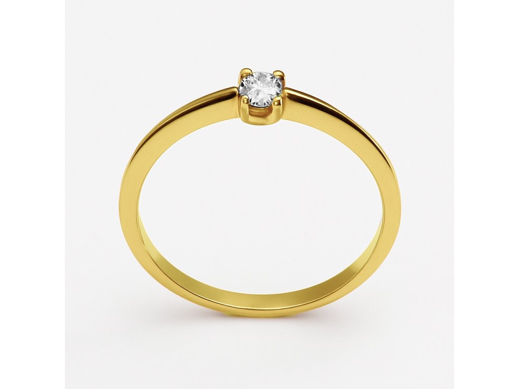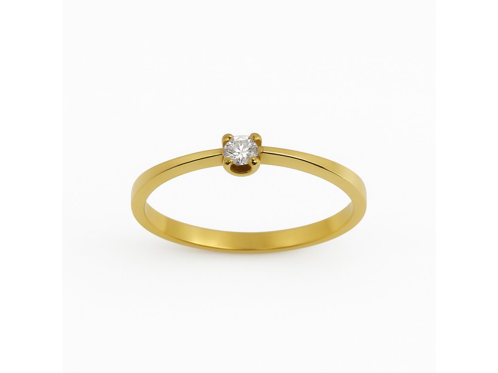Jemný zásnubní prstýnek ze žlutého zlata AU585/1000 zdobený briliantem. Prsten je velice oblíbený pro svoji jednoduchost.