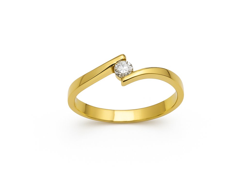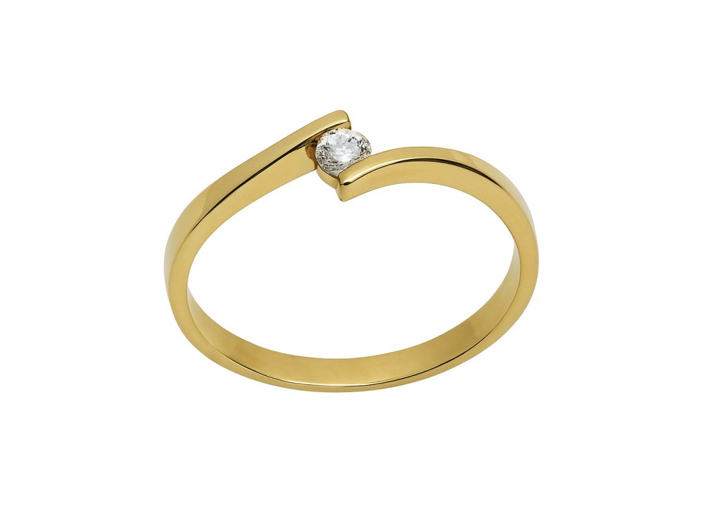 Krásný zásnubní prstýnek ze žlutého zlata AU 585/1000 zdobený briliantem. Prsten je oblíbený pro svoji jednoduchost.