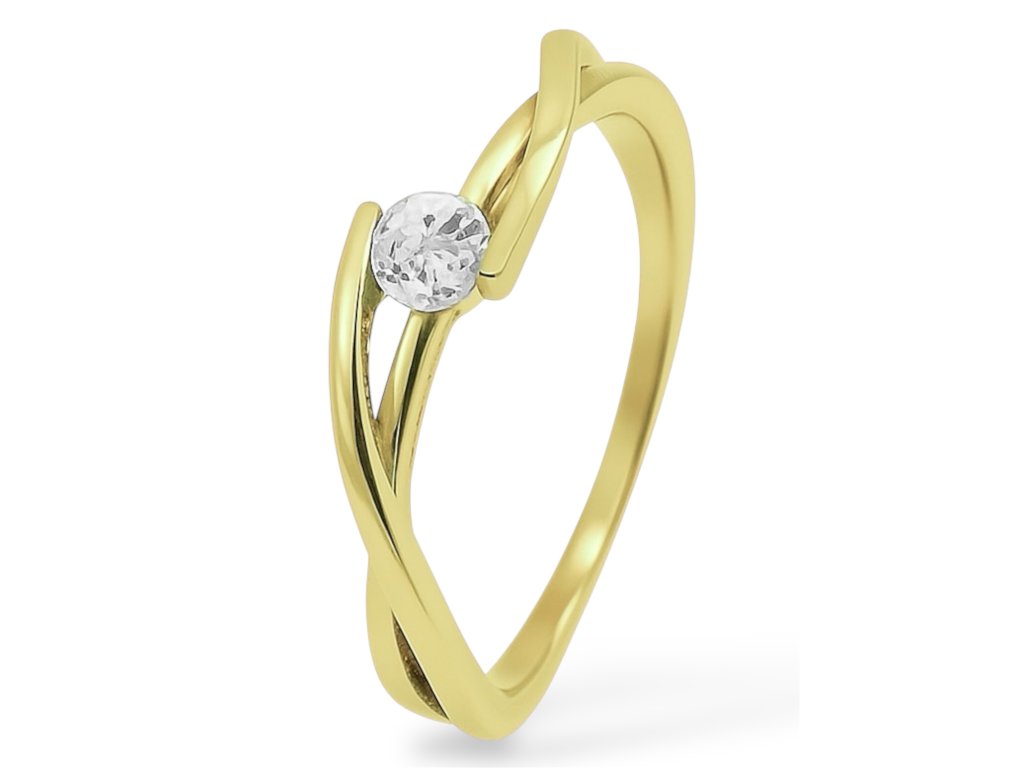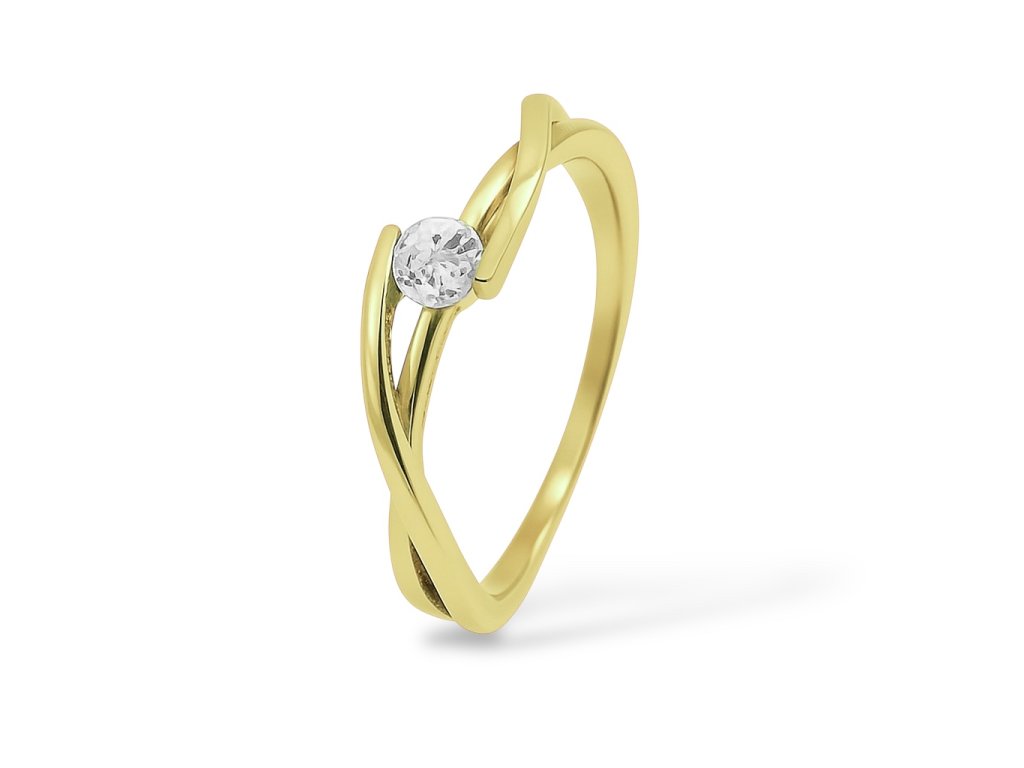 Zásnubní prsten ze žlutého zlata AU 585/1000 zdobený briliantem.