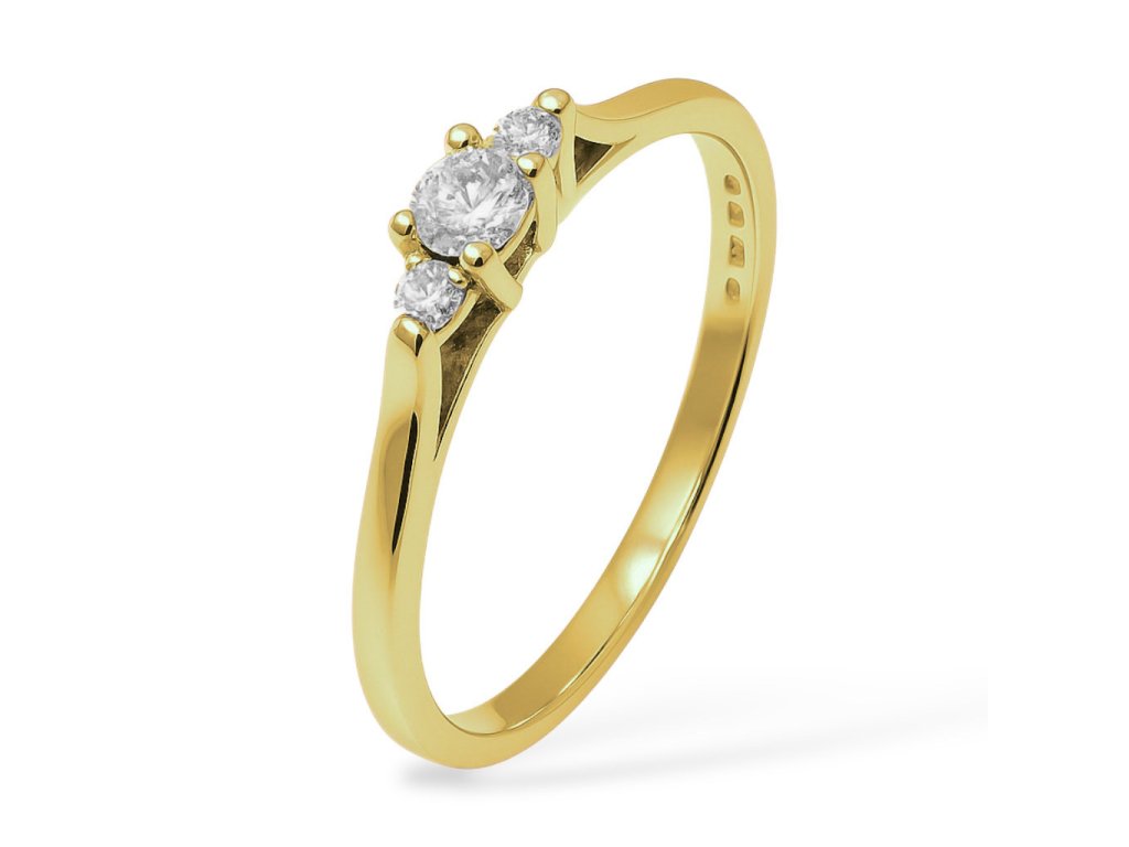 Jemný zásnubní prstýnek ze žlutého zlata AU 585/1000 zdobený brilianty. Prsten je velice oblíbený pro svoji jednoduchost.